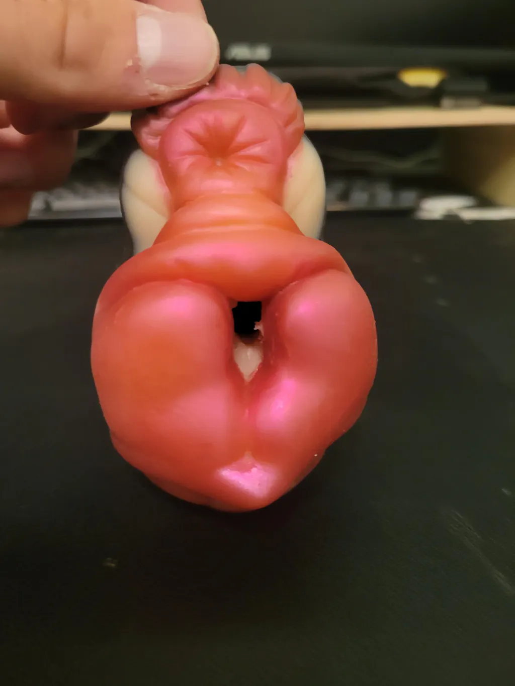El canal comienza con una serie de anillos apretados que se contraen alrededor del glande, como un cérvix voraz que prueba tu entrada. Luego, te sumerges en una zona repleta de nudos flexibles y orgánicos que se enrollan sobre tu miembro con cada caricia, creando ondas de cálida fricción. Cuanto más profundo penetras, más complejas se vuelven las texturas, con pliegues enredados que alternan entre la tensión, el deslizamiento y el masaje profundo.